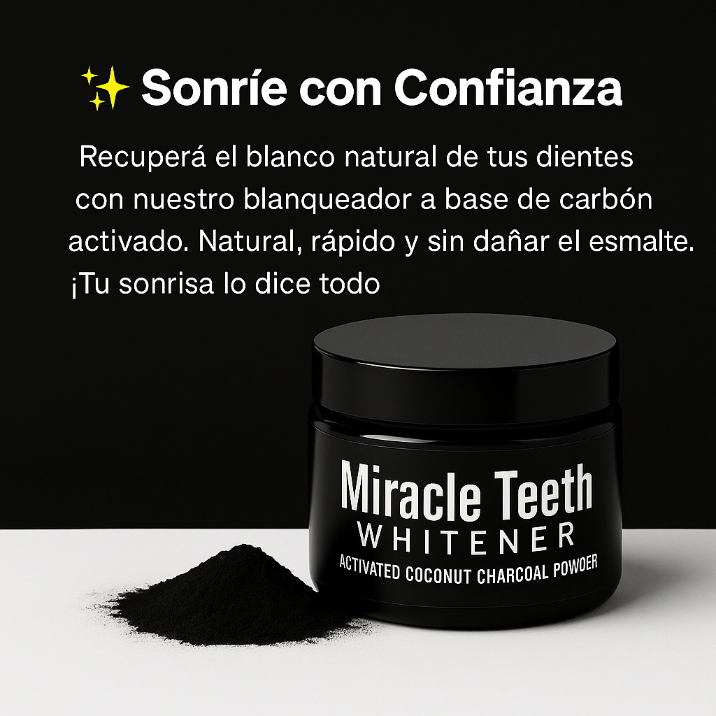 Descubrí una forma segura y natural de blanquear tus dientes. Nuestro carbón activado elimina manchas sin dañar el esmalte ni causar sensibilidad. Ideal para quienes buscan resultados reales sin recurrir a tratamientos abrasivos.